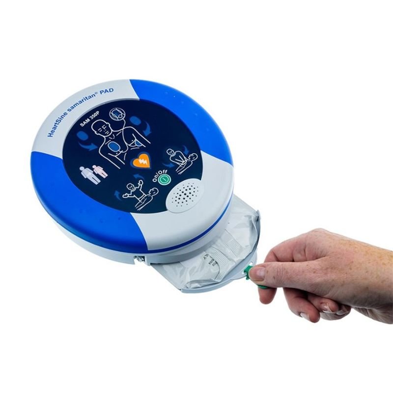 O samaritan PAD HeartSine é um desfibrilador externo automático (DEA) que analisa o ritmo cardíaco e aplica um choque elétrico em pacientes de parada cardíaca súbita para restaurar o ritmo cardíaco normal. O DEA é fácil de usar e apresenta instruções audiovisuais claras para o socorrista, desde a aplicação das pás até a aplicação do choque (se necessário).